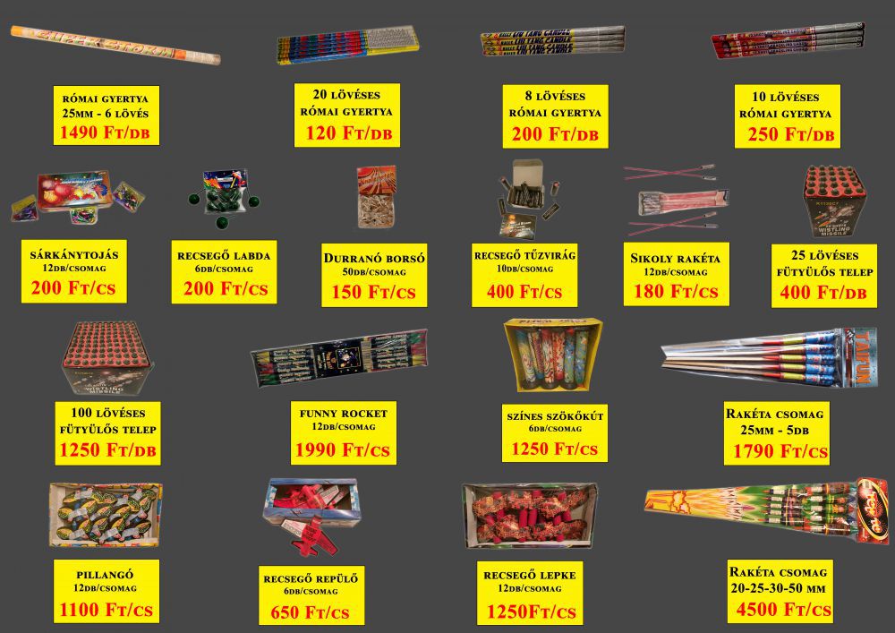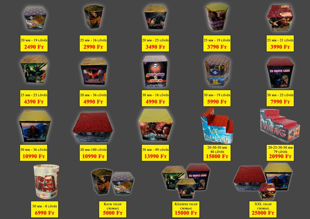 Csináld magad Tűzijáték: 20.000 Ft-tól, a tűzijátékhoz mi összeállítunk egy egységcsomagot 2. kategóriájú bombatelepekből, melyeket mint magánszemély megvásárolhat szaküzletünkben, és szabadon felhasználhat a törvényi előírásoknak megfelelően egész évben. Adunk hozzá részletes leírást, és felcimkézzük működtetési sorrendben, így önnek más dolga nincsen, mint meggyújtani a gyújtózsinórt, és kész a tűzijáték.